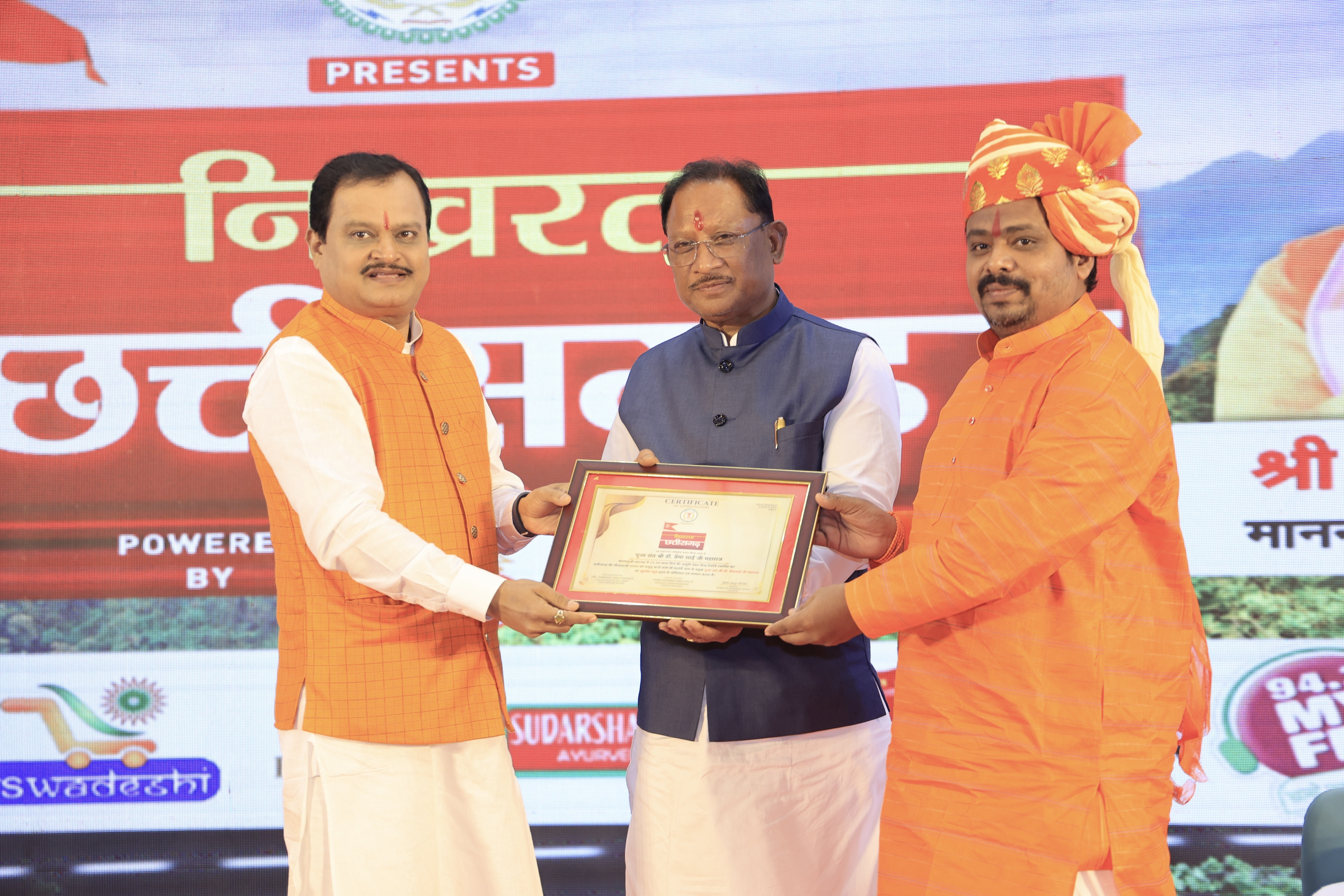 मुख्यमंत्री श्री विष्णुदेव साय जी और पूज्य संत श्री डॉ. प्रेमा साईं महाराज जी को 11,000 किलो मिर्ची हवन के भव्य आयोजन में उनके योगदान के लिए सम्मानित किया गया।